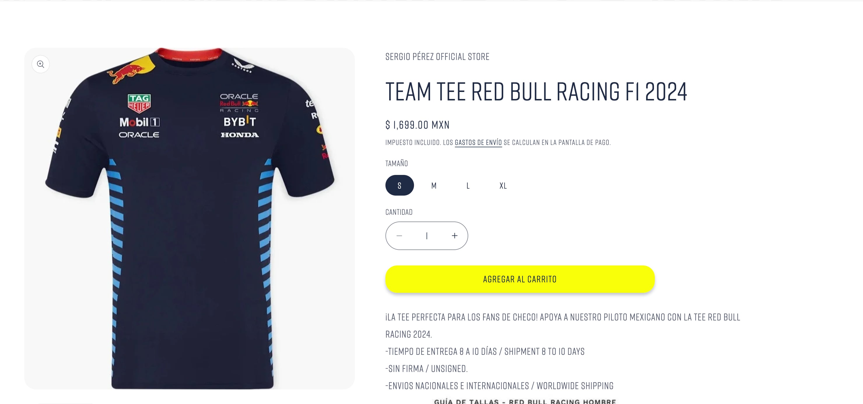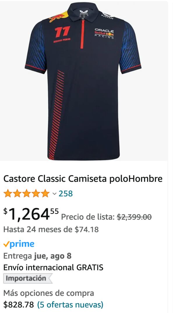 El outfit de Checo Pérez lo puedes encontrar en la página Red Bull shop, checoperez.com, F1 store y en otras tiendas como Liverpool, Mercado Libre, Amazon Prime, Innovasport, donde suelen haber más descuentos.