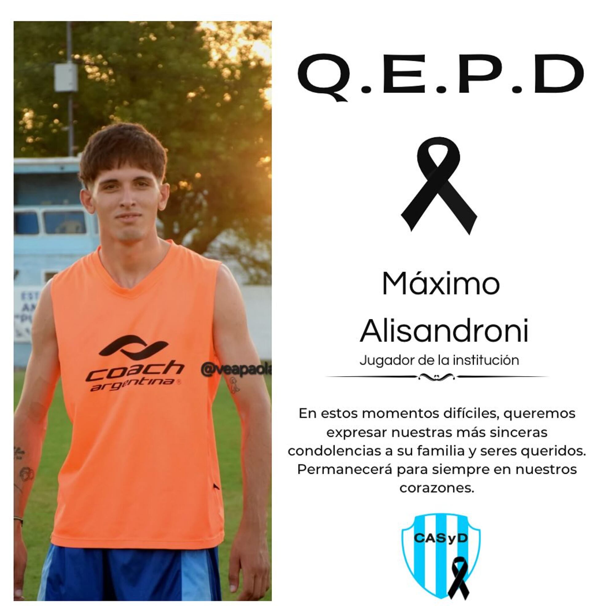El Club Argentino de Mariano H. Alfonzo. no fue el único que mandó sus condolencias por la muerte del jugador Máximo Alisandroni.