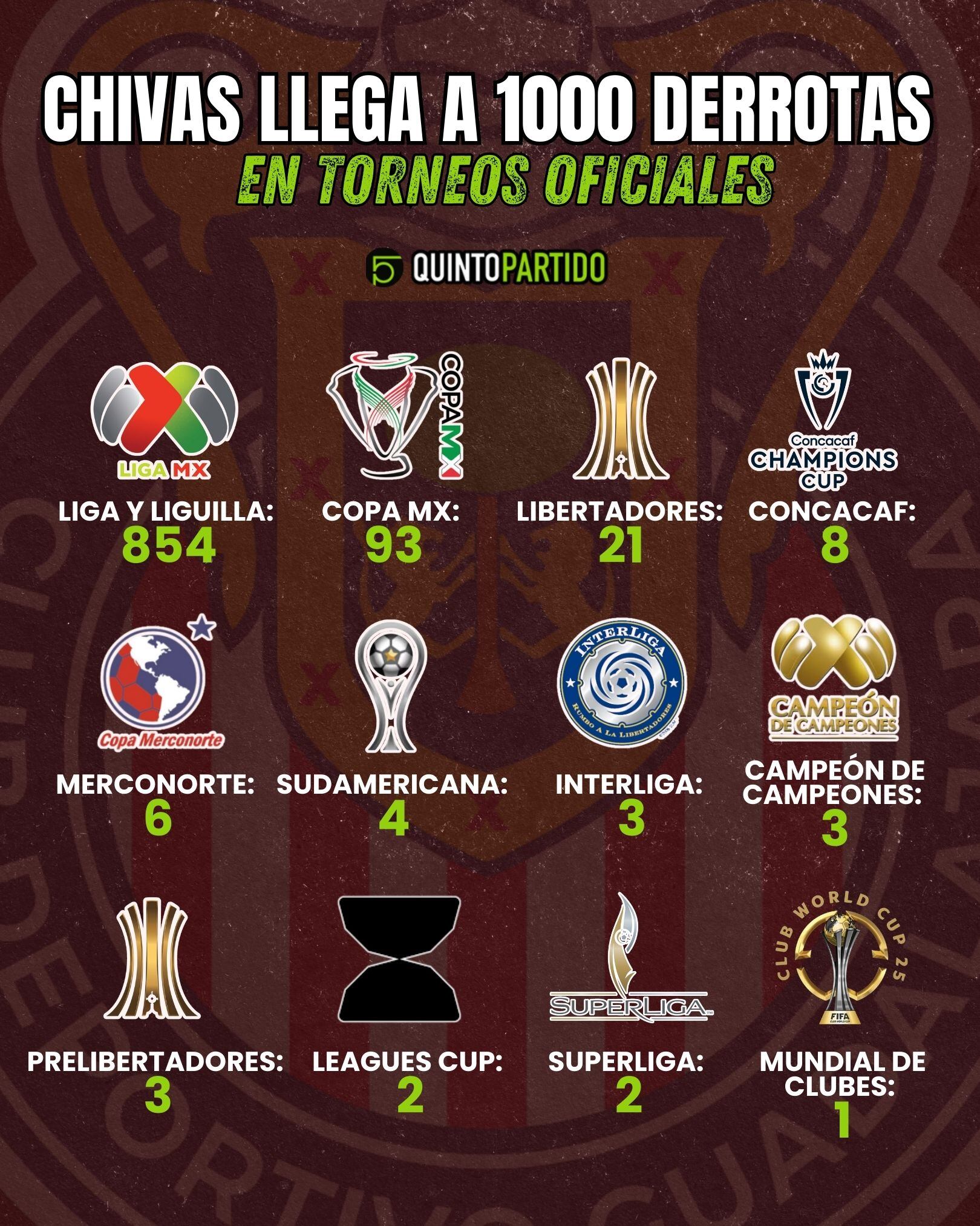- Chivas: 853 derrotas