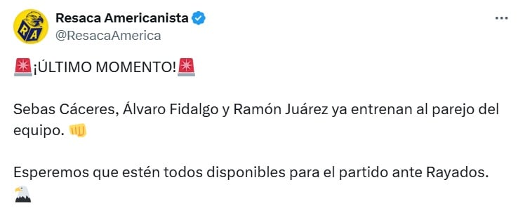 Pero ahora, parece que el Club América tiene una pequeña luz en medio de tanta oscuridad, pues recuperarán a tres piezas clave para el partido contra Rayados de Monterrey.
