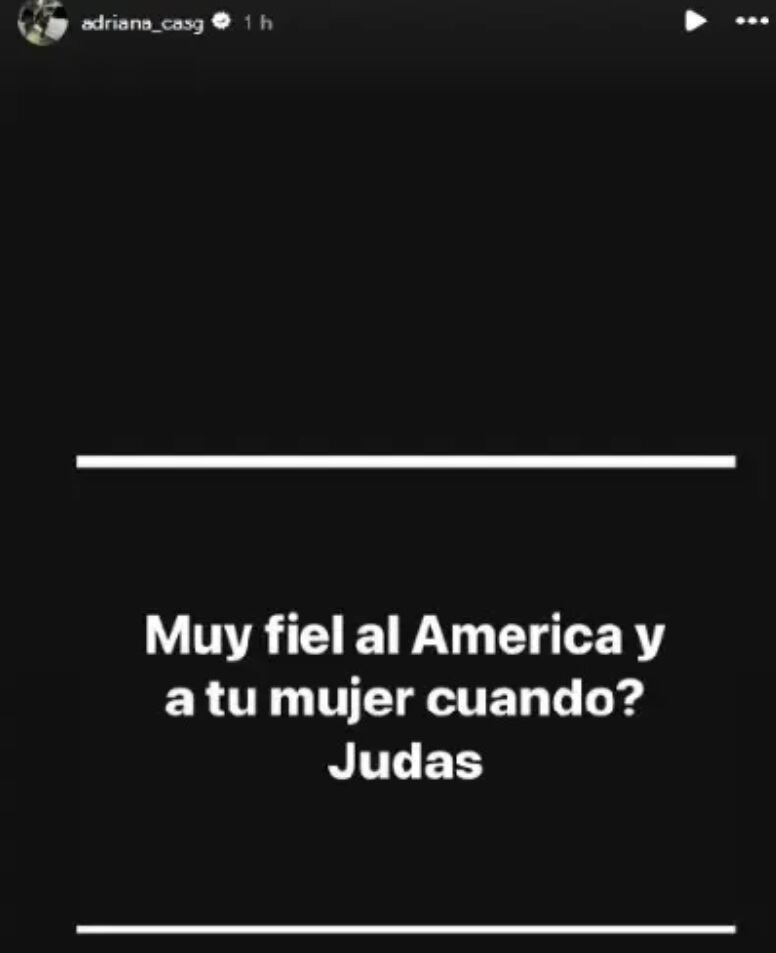 “Muy fiel al América ¿Y a tu mujer cuándo, Judas?”, escribió Adriana Castillo, ex esposa del Chicote Calderón, en su cuenta de Instagram.