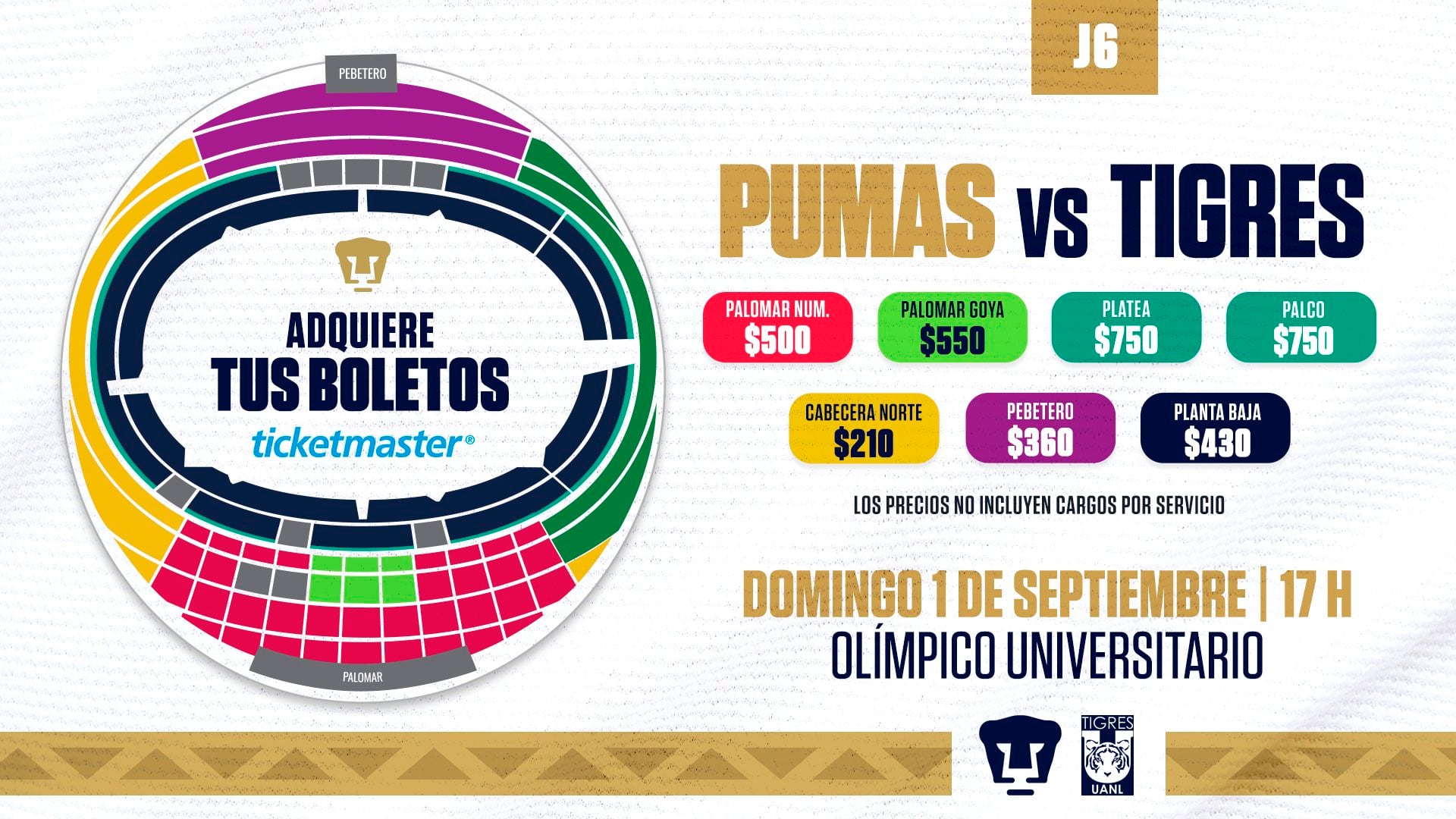 Precio de los boletos para el Club Pumas vs Club Tigres: