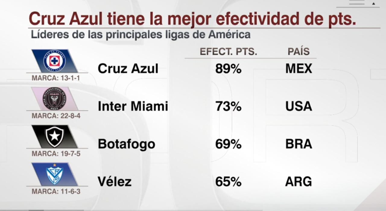 Estos sorprendentes resultados del Cruz Azul le han dado una efectividad del 89%, haciéndolo el mejor equipo de todo el continente americano.