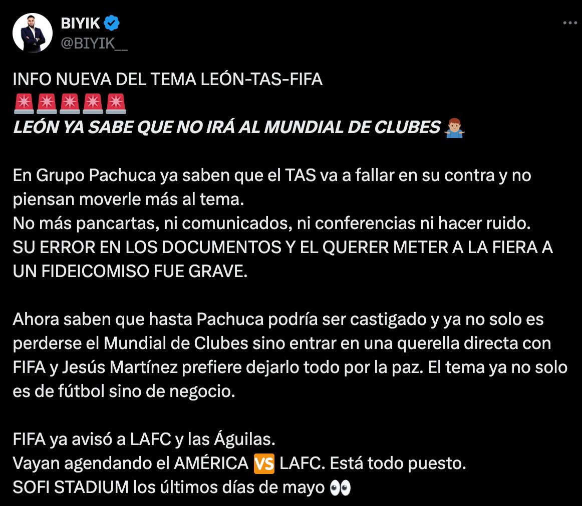 “En Grupo Pachuca ya saben que el TAS va a fallar en su contra y no piensan moverle más al tema. No más pancartas, ni comunicados, ni conferencias ni hacer ruido. Su error en los documentos y el querer meter a la fiera a un fideicomiso fue grave”, se lee en la publicación.