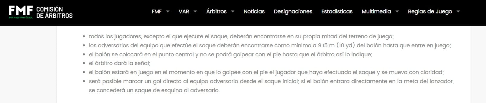 De acuerdo con las reglas de la IFAB, en el saque inicial de un partido de fútbol: Todos los jugadores, excepto el que realiza el saque, deben estar en su propia mitad del campo.