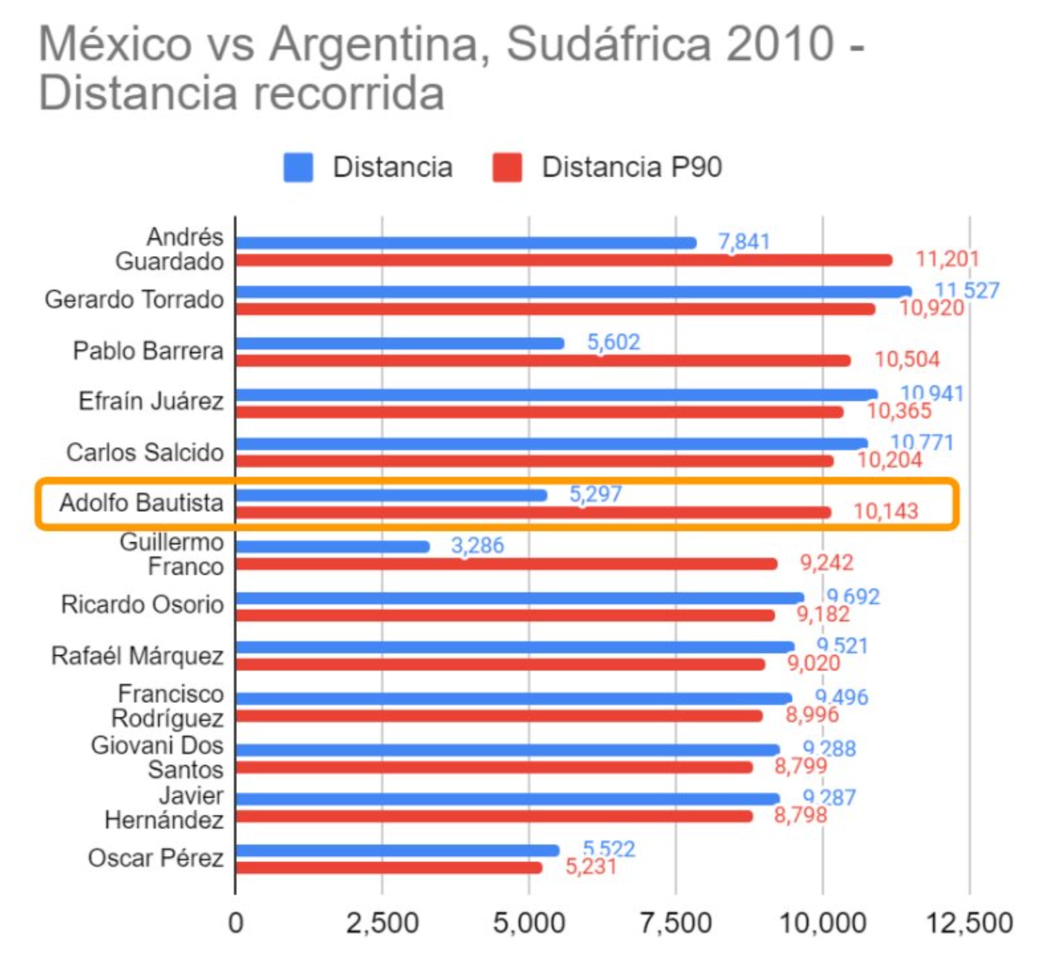 Técnicamente el Bofo Bautista sí corrió menos que el Conejo Pérez en el partido entre la Selección Mexicana y la Selección Argentina en el Mundial Sudáfrica 2010.